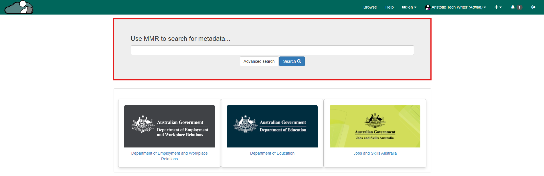 1. Select 'Aristotle Cloud Dashboard' from the dashboard side panel.
