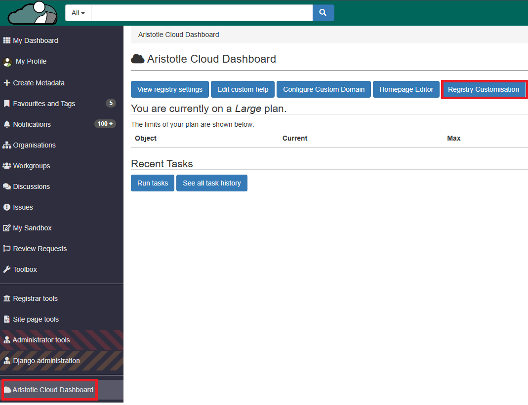 * Navigate to the **Aristotle Cloud Dashboard** from the left side menu.