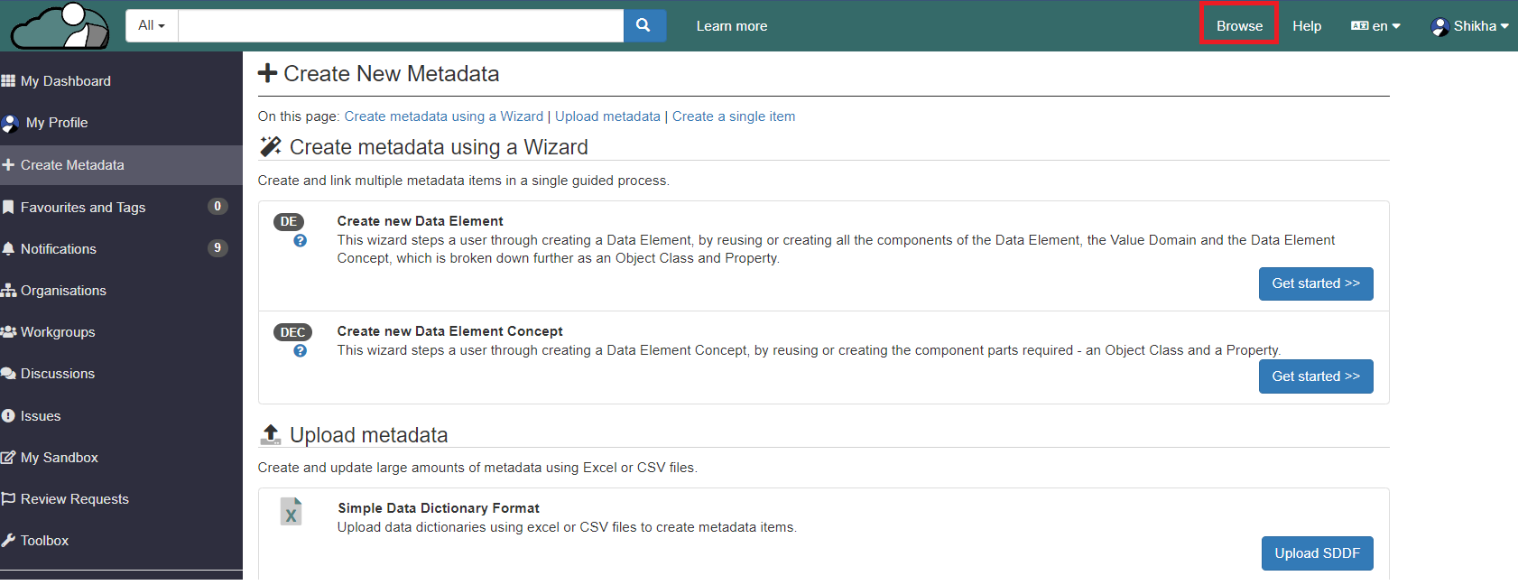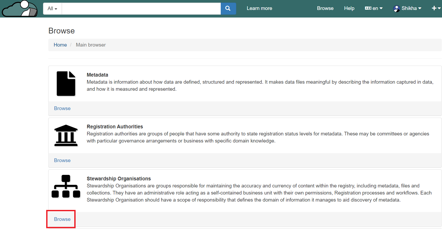 2\. Go to the stewardship organisation, click on browse.