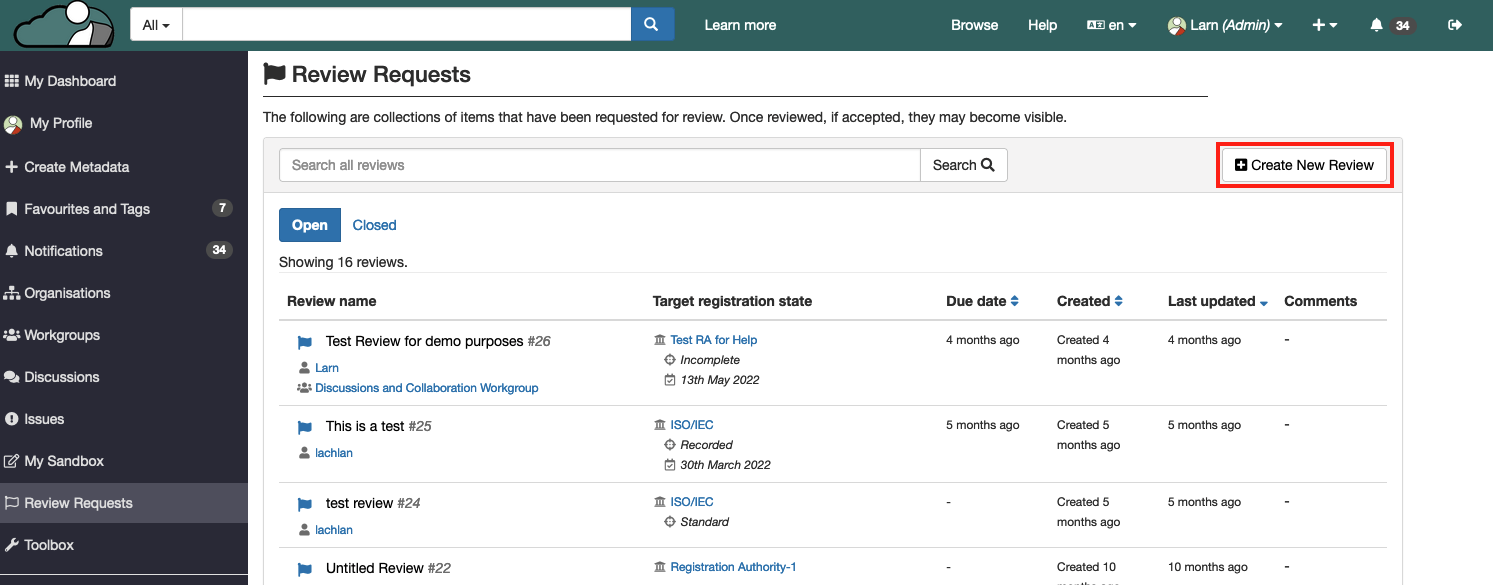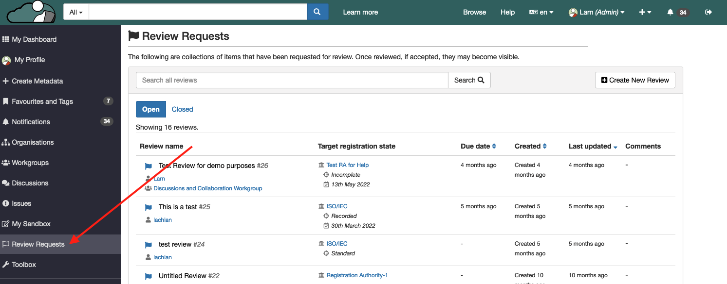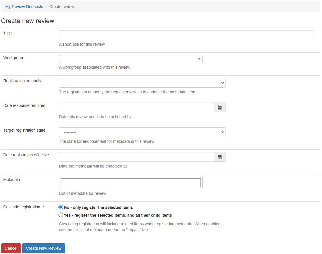Reviews are used to endorse metadata to different states by Registration Authorities - it's a way for different Registration Authorities, or different business areas, to put their 'stamp of approval' on metadata content.