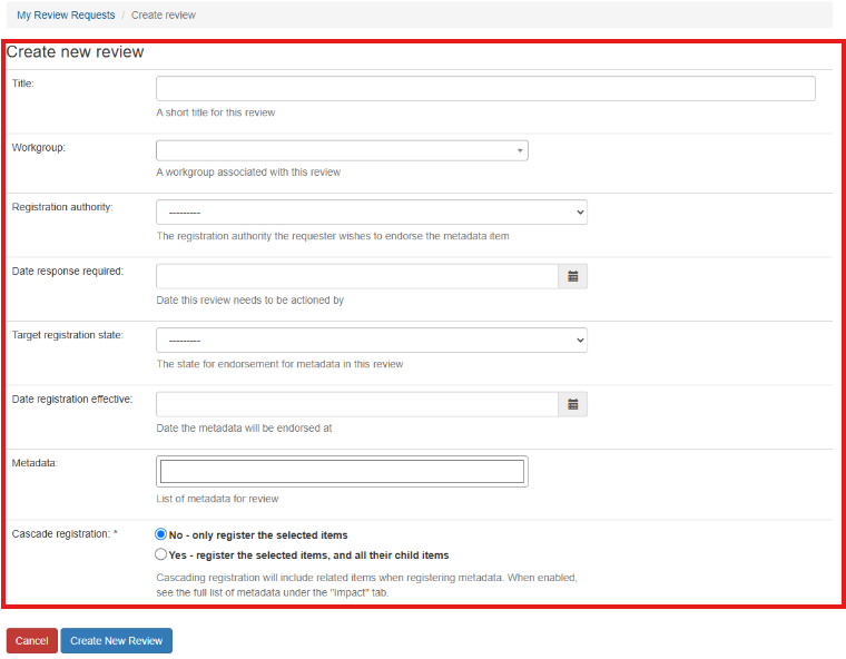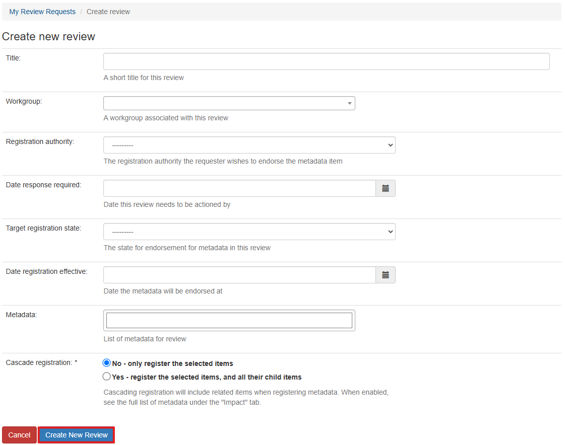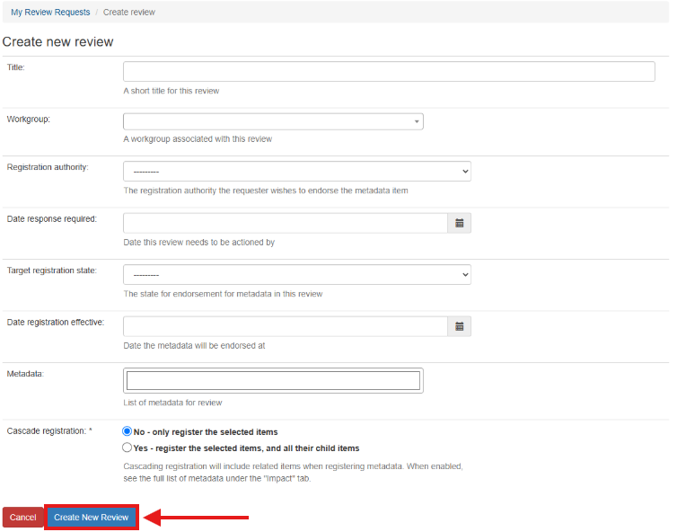 3. Fill in the 'Create new review' form as desired.