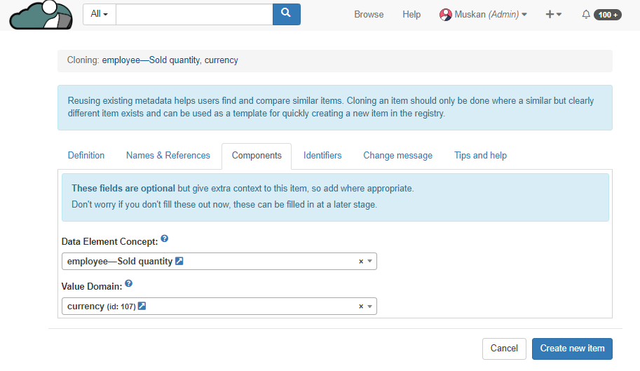 1. User can also add different value domain and data element concept to the cloned Data element.&#x20;