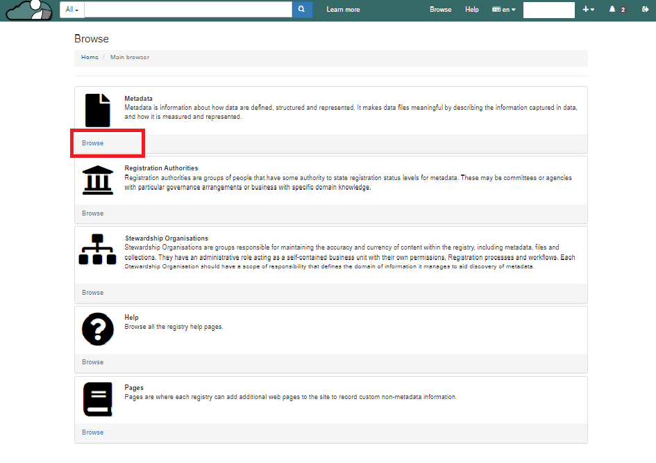 1. Click on "Browse" under "Metadata" section.&#x20;