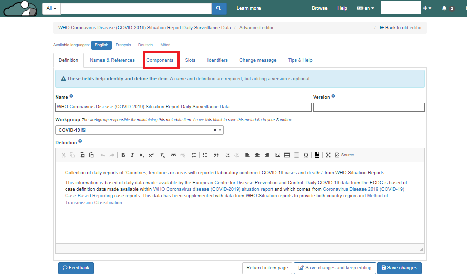 2\. In the Advanced editor, Click on the "components" tab.