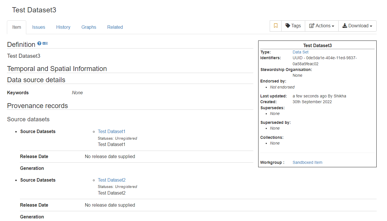 6\. Once done, select![](https://1464151032-files.gitbook.io/~/files/v0/b/gitbook-x-prod.appspot.com/o/spaces%2FIXci0eiRxXA0UhVYnwA2%2Fuploads%2FCvwyKNmEr8zyewuzwNMp%2F1.PNG?alt=media\&token=d8e752b5-bf64-484e-aff3-443db714db89)to create the new Data Set. The data lineage will now be visible on the item page under "Provenance".&#x20;