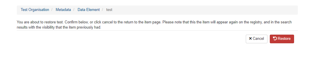 There are two ways you can view and restore deleted content in the registry: from your sandbox and from your workgroup.