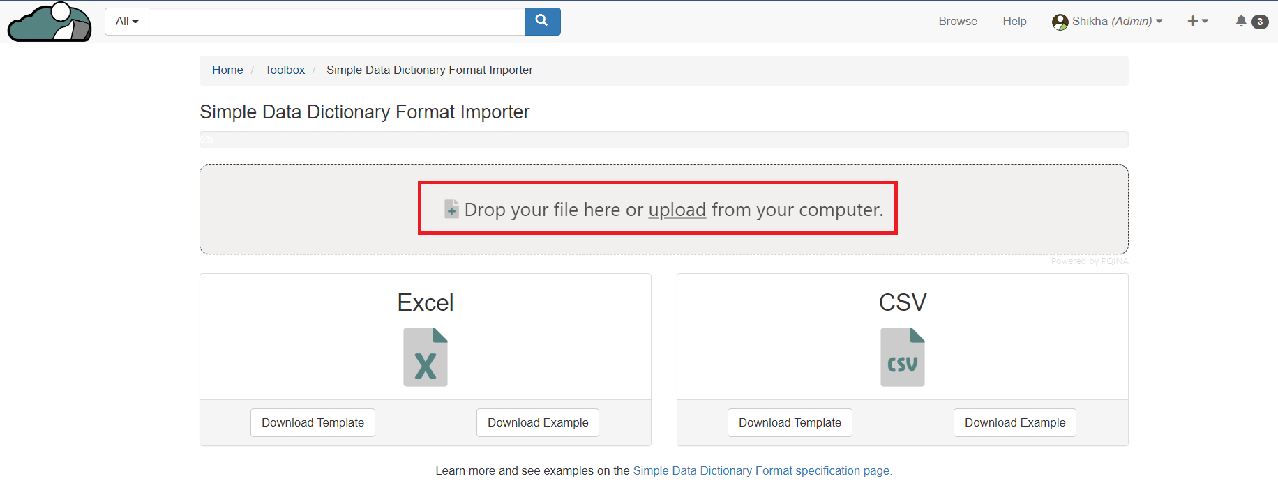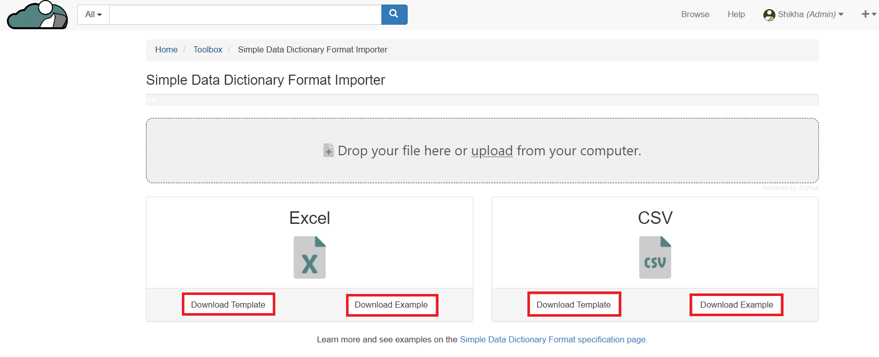 #### Steps to upload bulk metadata using 'Simple Data Dictionary Format':
