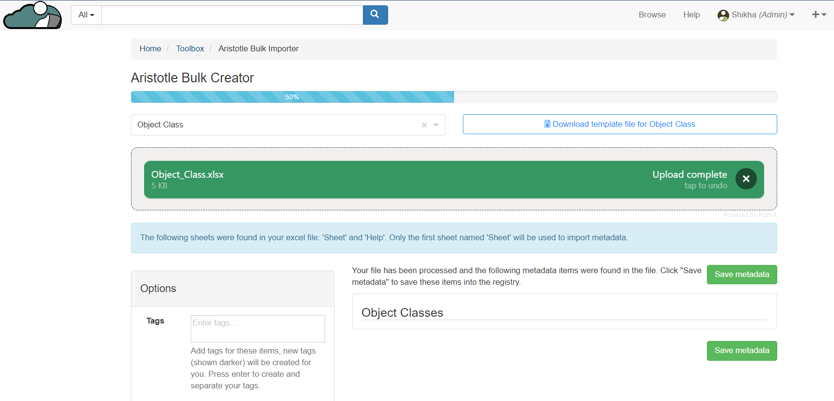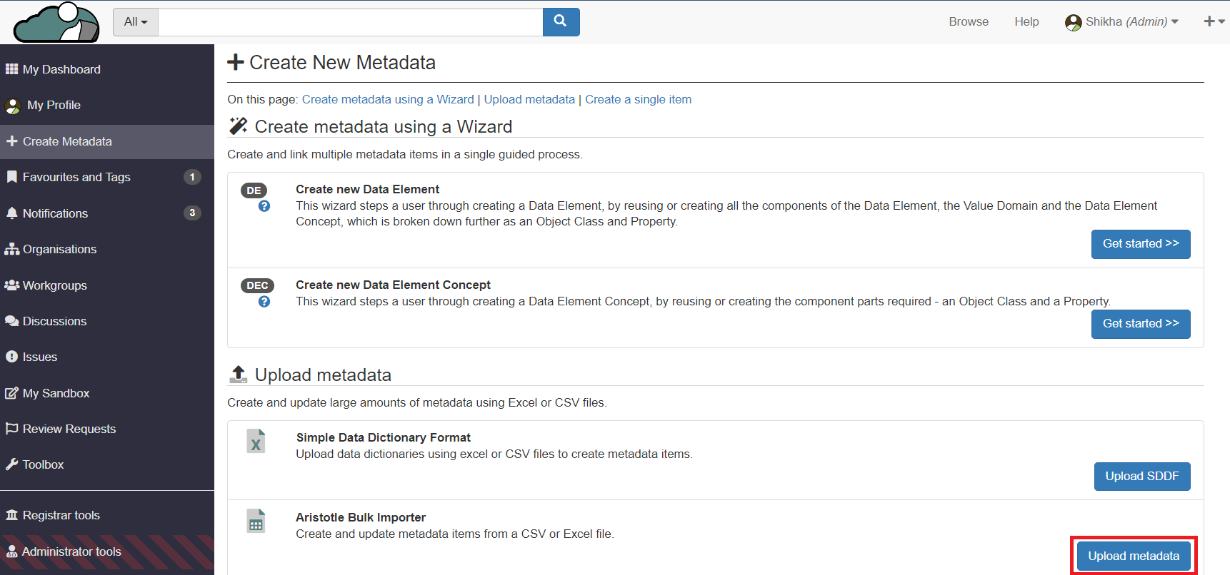 #### Steps to upload bulk metadata using 'Aristotle Bulk Importer':
