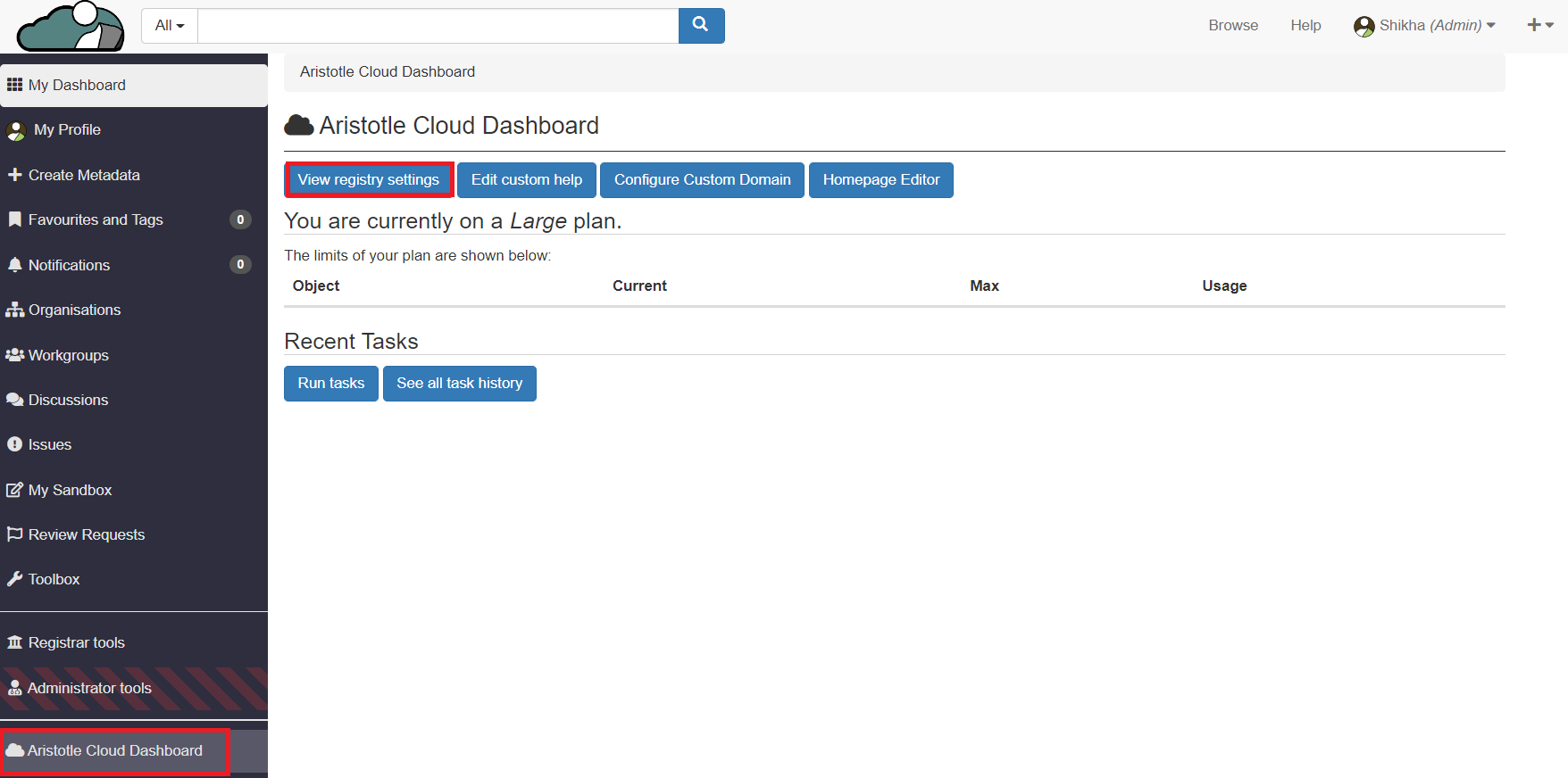 You must be an Administrator of the Registry to be able to perform these actions.