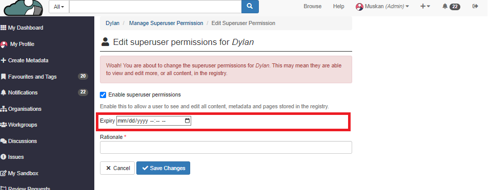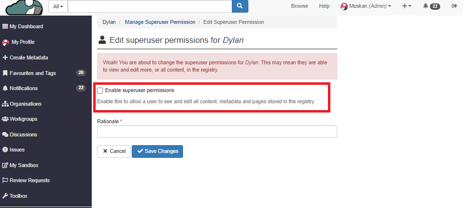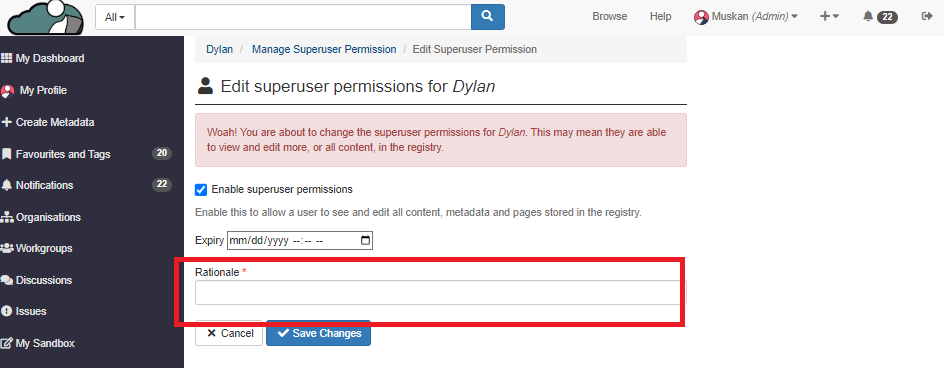 ### How to give Superuser permissions to the Aristotle staff on the platform