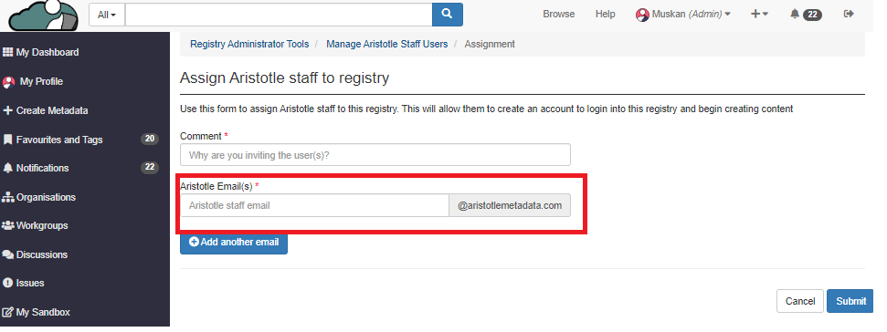 ### How to invite Aristotle staff to your registry