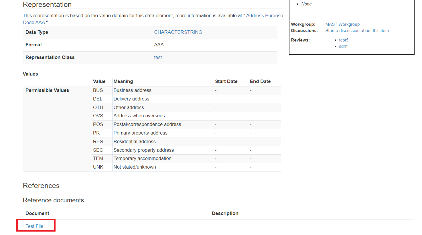 * On the item page, scroll down to the bottom and we can see the document under reference document.