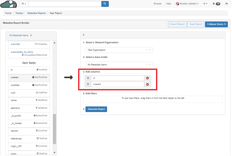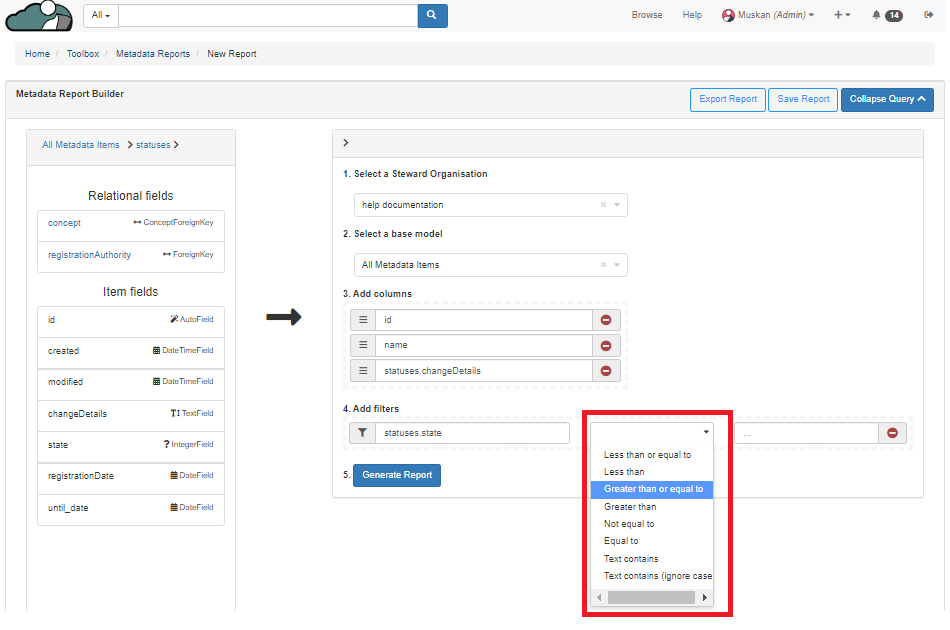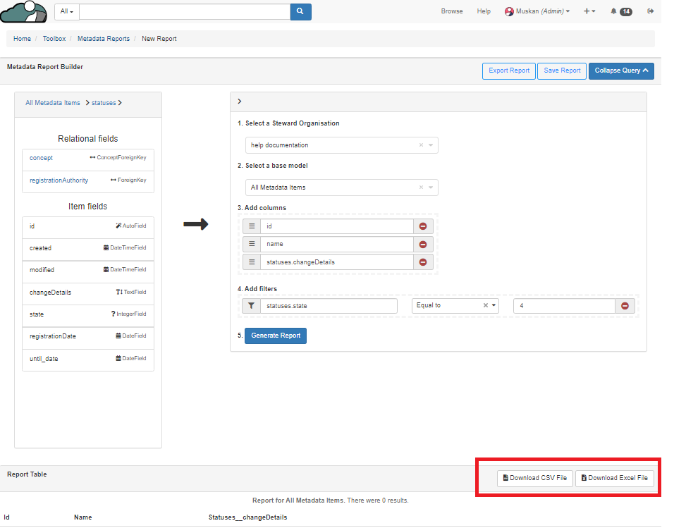 This feature in the Registry allows Administrators of the Stewardship Organisation to generate reports related to metadata items by adding a relationship to the item fields, which is already established between different metadata in the Registry.