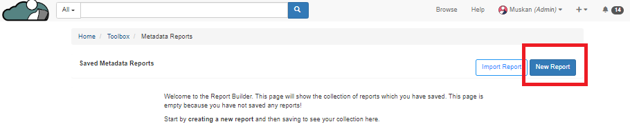 1. Click on "New Report" on the metadata report builder page.&#x20;