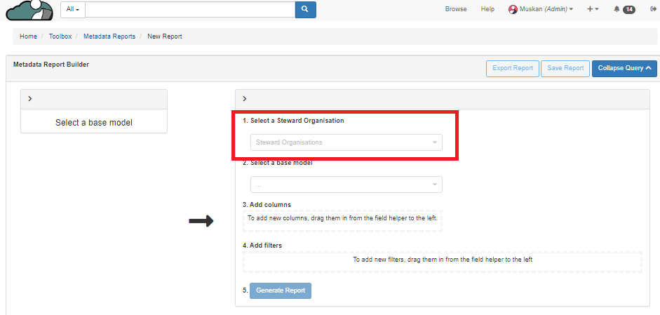 **Select a Base Model:** After Selecting the Stewardship organisation, the user must select a base model for the report builder.&#x20;