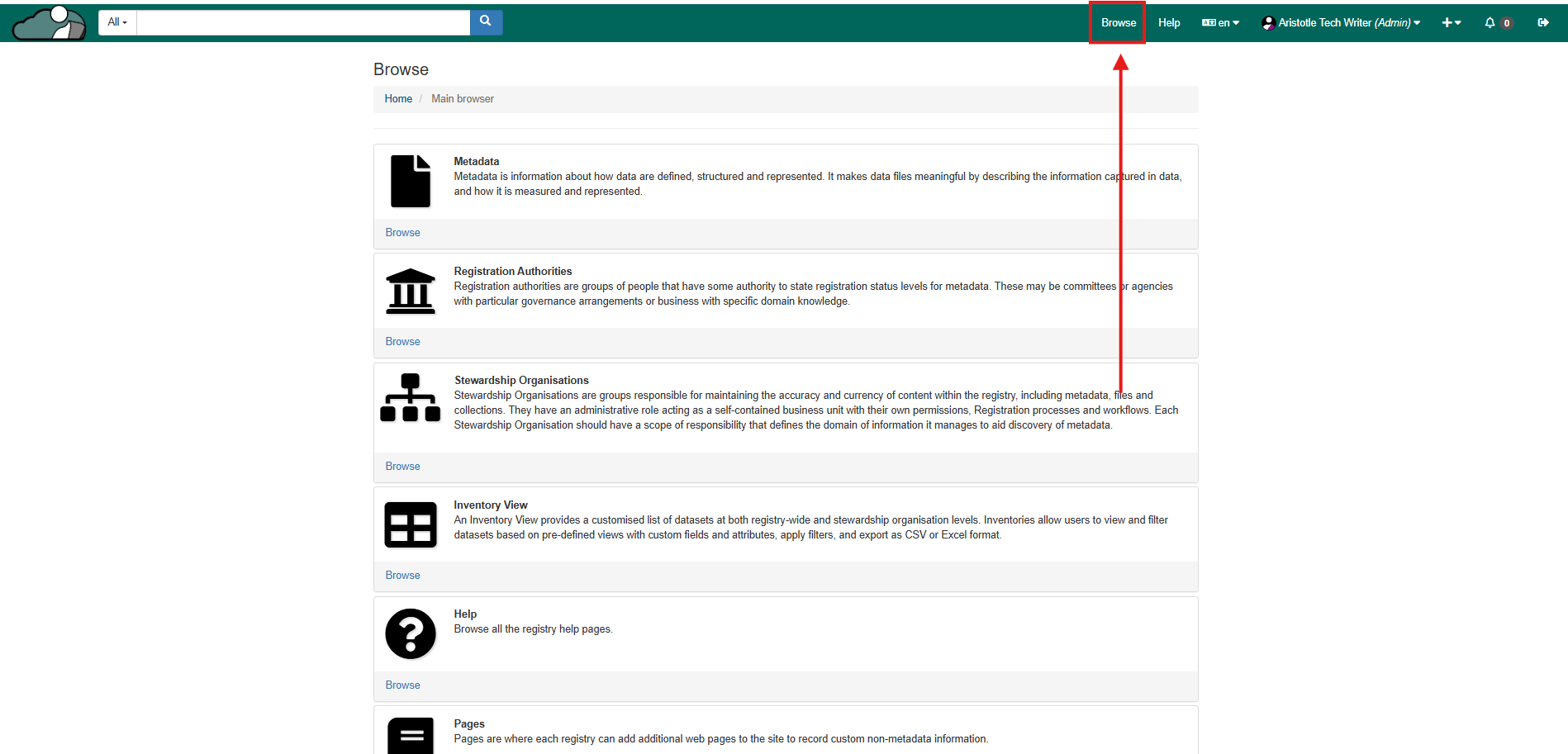 1. Select 'Browse' from the registry header.
