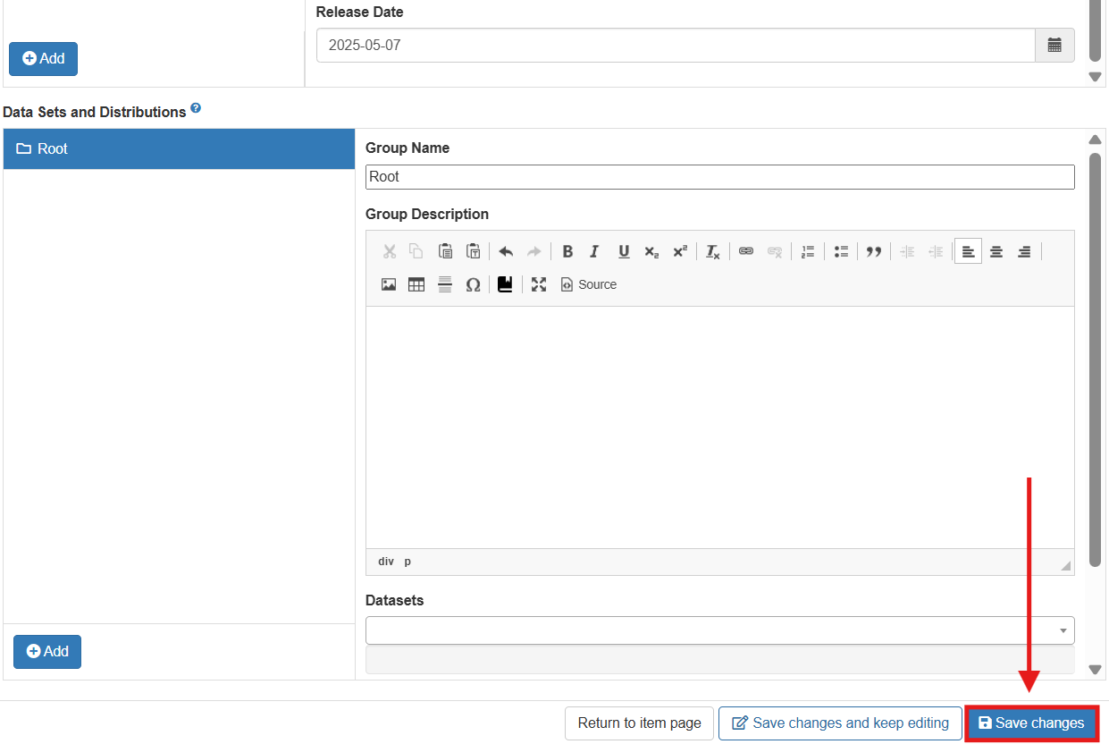 7. Select 'Save changes' once satisfied. The lineage details will be recorded on the data set's item page.