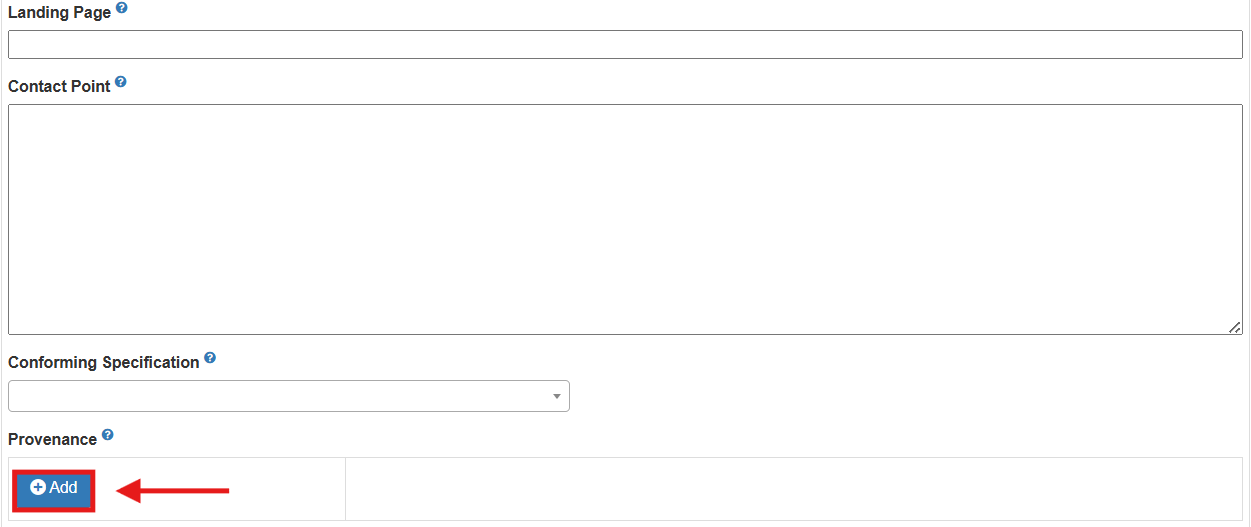 3. Navigate to the 'Provenance' section, then select 'Add'.