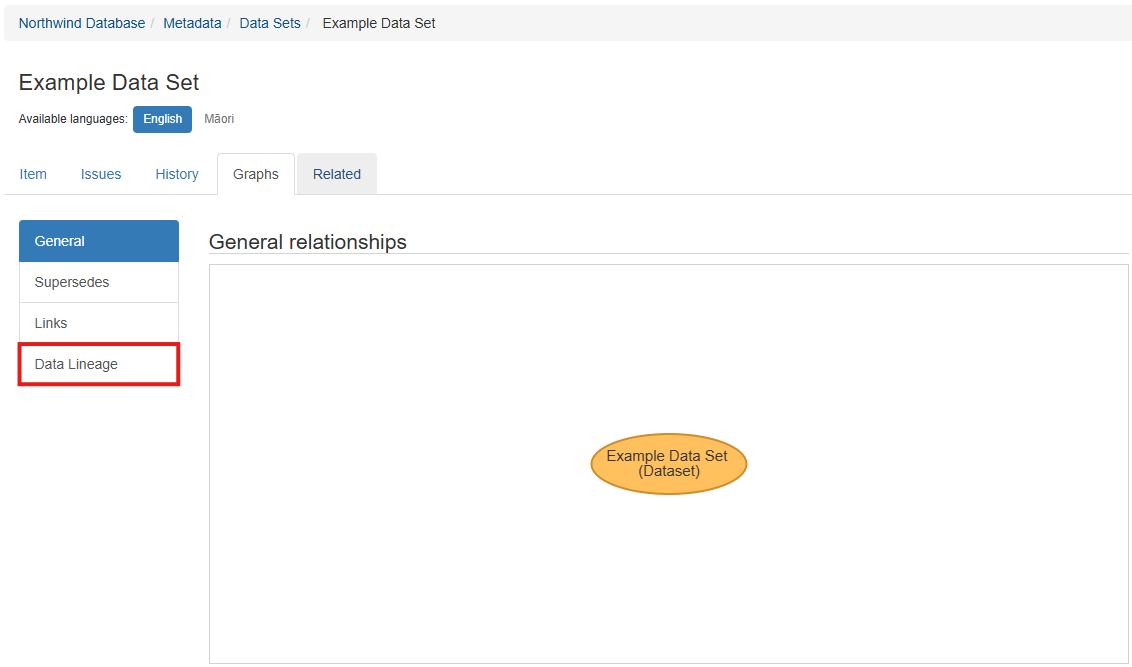 Select the 'Data Lineage' tab. The item's data lineage will be displayed.